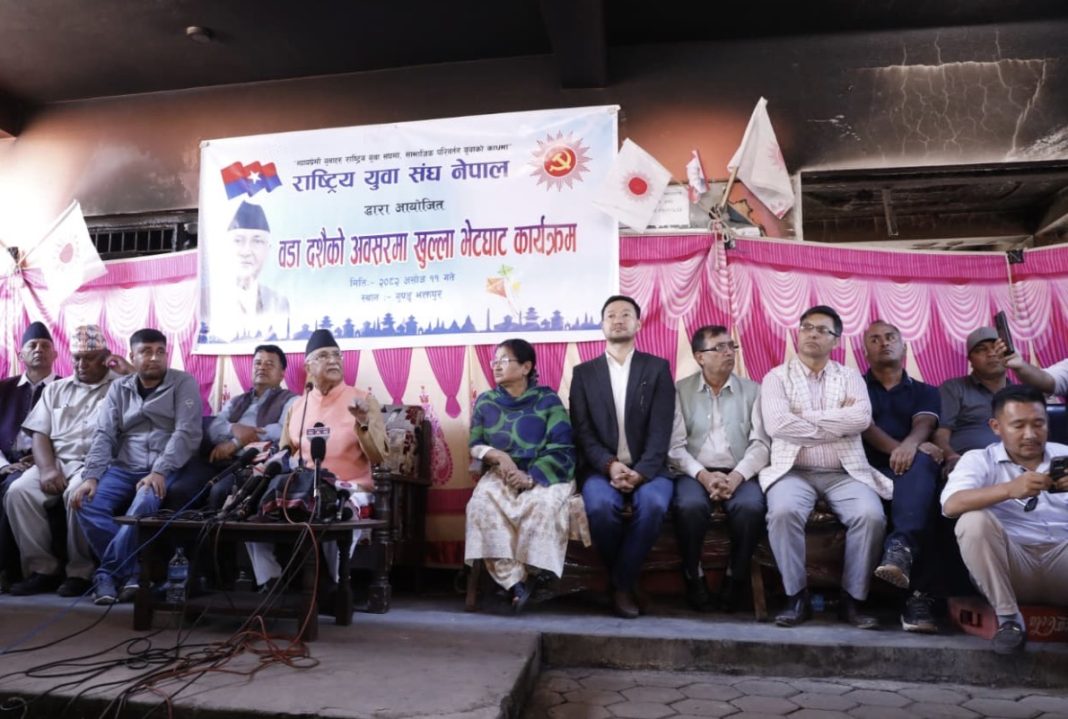 राष्ट्रिय युवा संघ नेपालले भक्तपुरको गुन्डुमा आयोजना गरेको ‘बडादसैंको अवसरका खुला भेटघाट कार्यक्रम’मा अध्यक्ष ओलीले देशभक्तिको पक्षमा बोल्नेहरुविरुद्ध भ्रमको खेती भइरहेको बताए ।